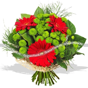 Спасибо, что ты есть! - букет из гербер и кустовой хризантемы