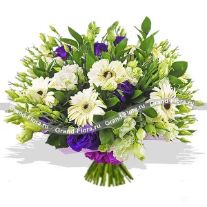 Цветочный луг – букет с белой эустомой и хризантемой