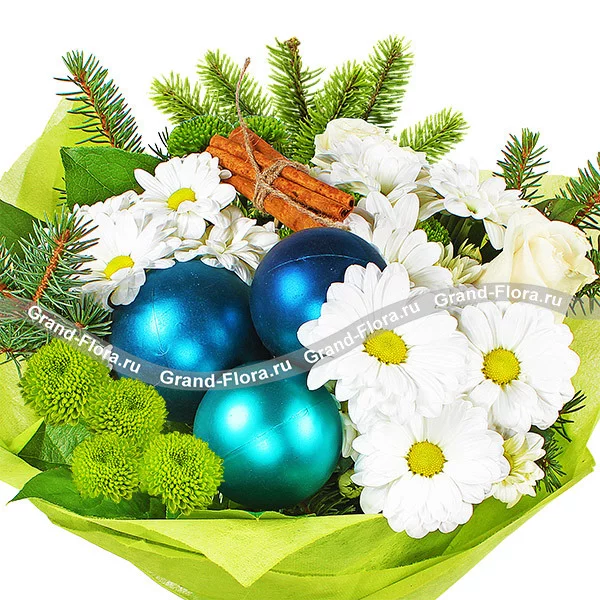 Ледяное королевство - букет из хризантем с новогодним декором