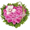 Стандартный: роза розовая - 10 шт., орхидея белая - 1 шт., декоративная зелень., декор., оазис.